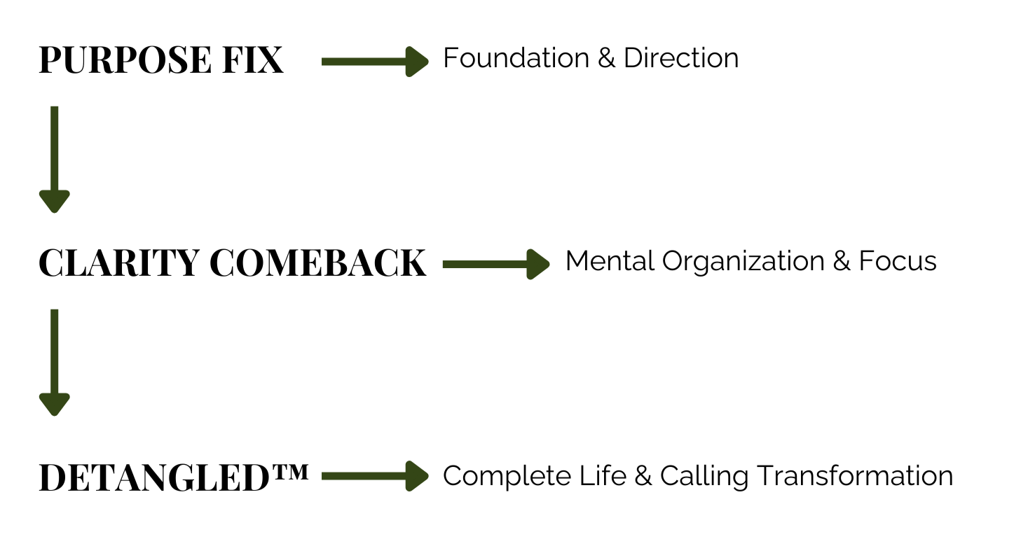 Start with Purpose Fix or Clarity Comeback! Each course is designed to meet you where you are.